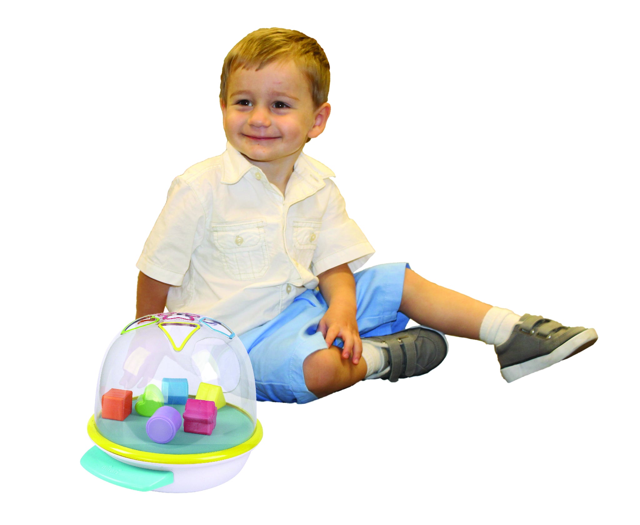 Children will enjoy fitting the six colorful shapes into the coordinating holes on top of the 8" tall x 8.25" dia. Bouncy Bop Shape Sorter! And when the shapes fall inside and hit the surface, they go boing! Once all the shapes are inside, children can push the side handle to activate the paddle and watch the shapes go boing, boing, boing over and over! It’s the perfect classic shape sorter with added bouncing fun!