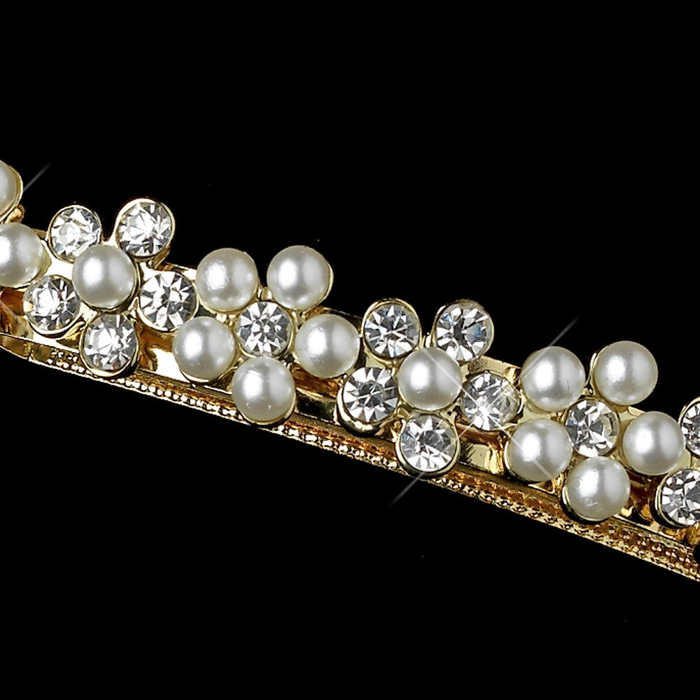 This beautiful barrette features lovely pearls and rhinestones floral in a gold setting. Perfect accessory for any special occasions..Antique silver or Light Gold plated rhinestone floral bridal barrette with white or ivory pearl accents.