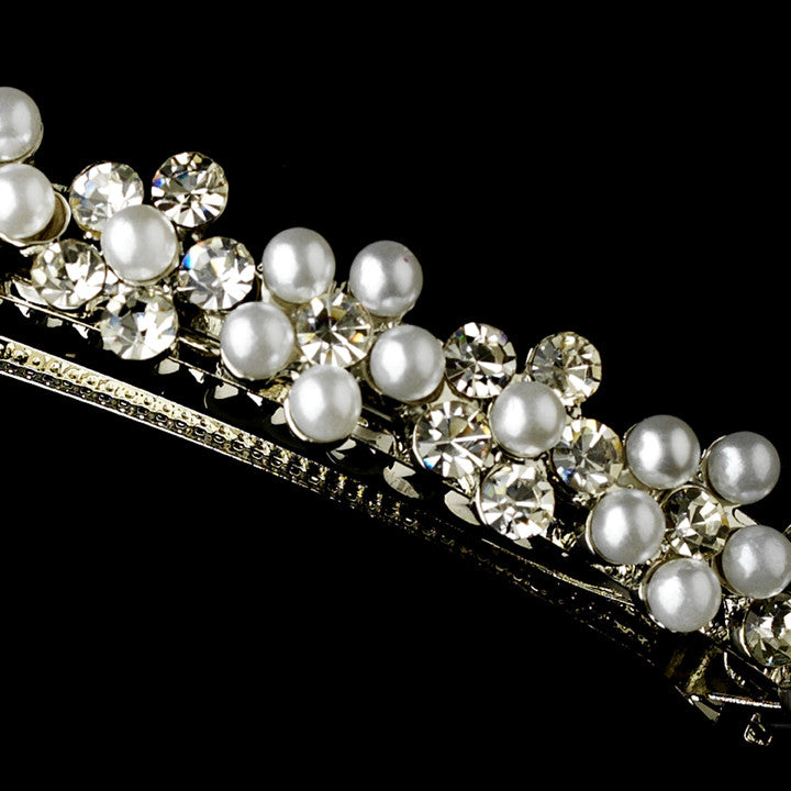 Pearl & Rhinestone Floral Bridal Hair Barrette 1020