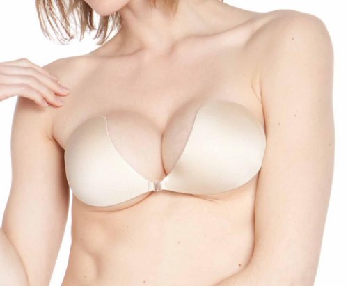 Nu Bra Womens Super Padded Strapless Adhesive Body Bra Beige DD