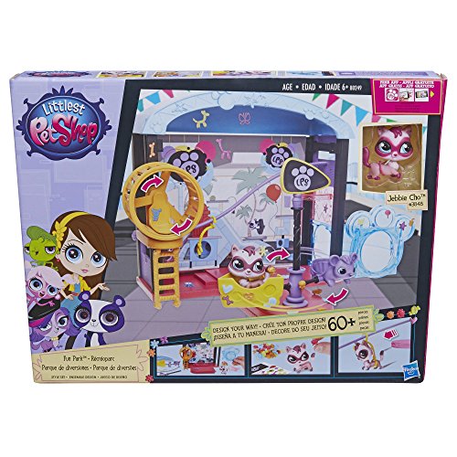 It's the ultimate play park for your fun-lovin' pets! The Fun Park Style Set has everything you need to create wonderful adventures for your pets, over and over again! First, have fun creating the playset. Next, deco the set (and your pets!) with stickers and Deco Bits. Then style with accessories to create your own unique look. Take your pets for a ride on the girl-activated spinning tilt-world or the zip-line! Playset attaches to other LPS Style Sets, too (sold separately)! It makes a fantastic addition to your Littlest Pet Shop world! And now you can play with your pets digitally, too, with your free LPS app (available for a limited time). Once you've launched the app, simply hold your pet, scan with your mobile device, then play with your virtual pet! Works with select Apple and Android devices. Check littlestpetshop.com for availability and compatibility information. Micro-transactions available in the game but not required. App not compatible with earlier LPS pets, or current LPS smaller pets. Littlest Pet Shop, Deco Bits and all related characters are trademarks of Hasbro.