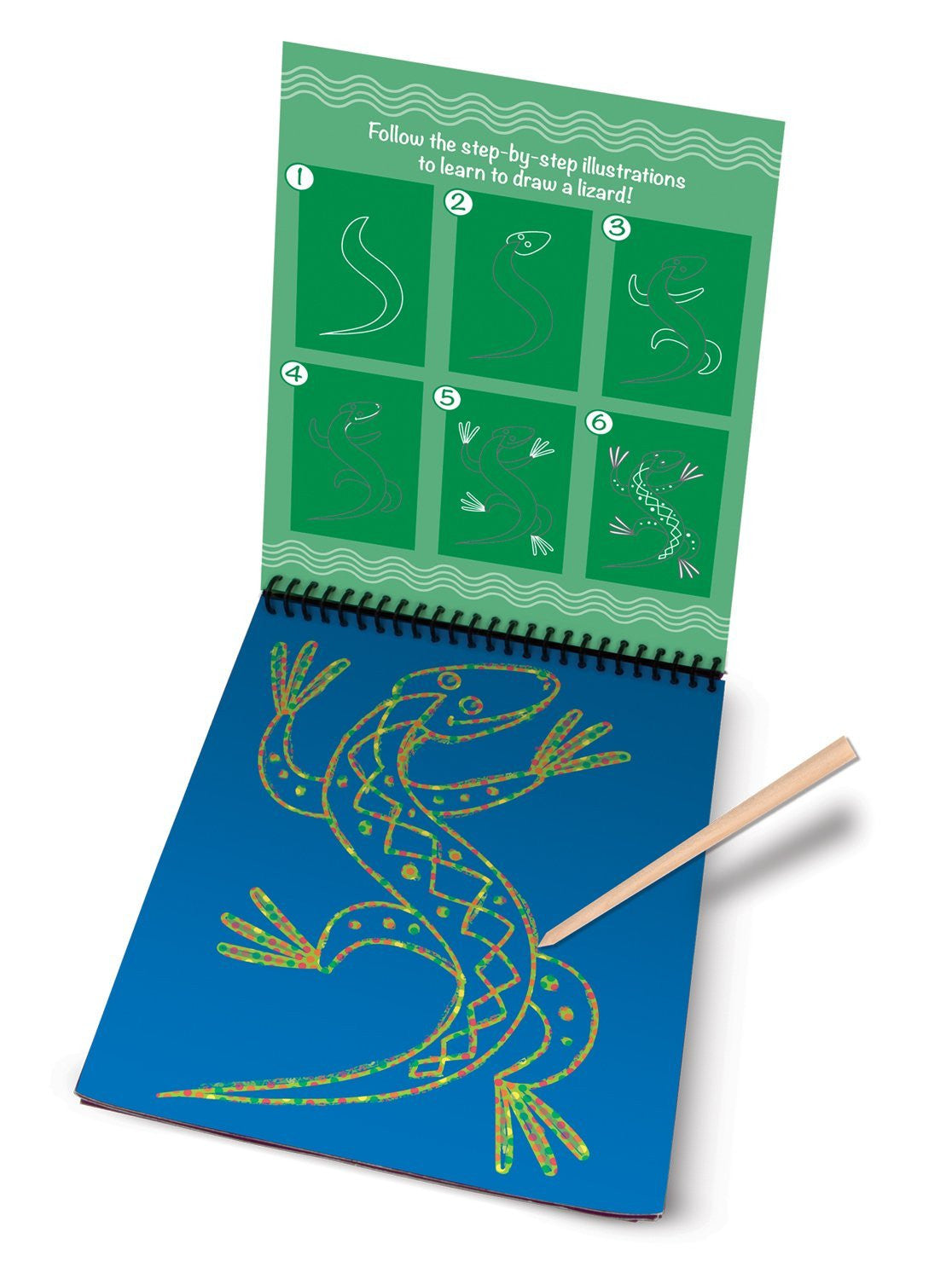 - Spiral-bound pad filled with learn-to-draw Scratch Art pictures