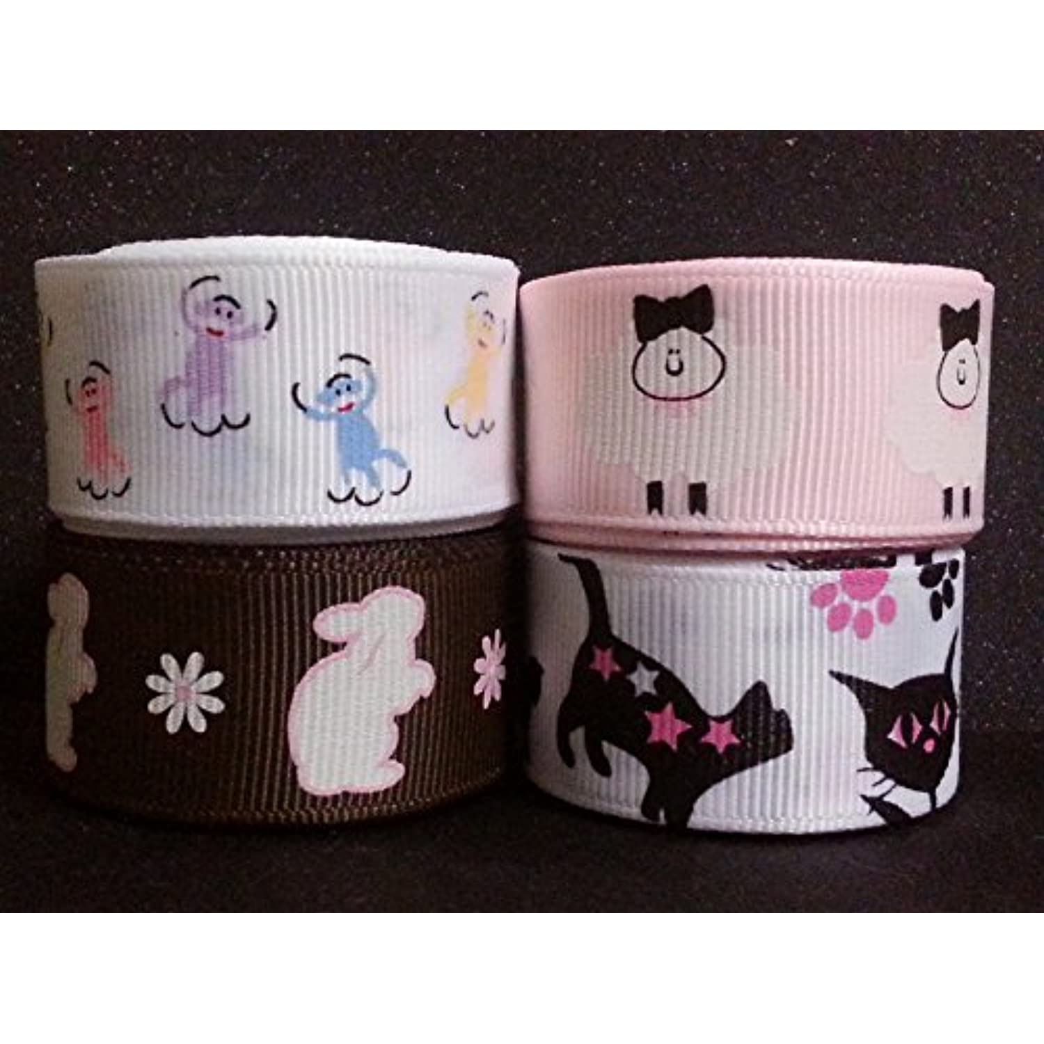 Polyester Grosgrain Ribbon for Decorations, Hairbows & Gift Wrap by Yame Home (7/8-in by 1-yd, 00025401 - white sheep w/ light pink background)