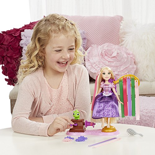 With Rapunzel's Royal Ribbon Salon, your little dreamer can create stylish hair extensions using colorful ribbons for her favorite royal princess! Rapunzel sits in her special salon chair while your child styles her hair. Simply put the colorful ribbon in the spinner, turn the handle, and watch as it transforms to look like hair! The Salon also comes with a variety of ribbons and hair clips that can be mixed and matched to create the perfect enchanted look!