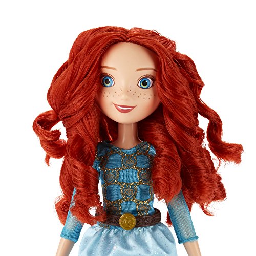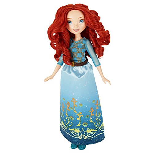 Merida is ready for shimmering adventures with your little princess! Wearing her classic outfit with a new twist, Royal Shimmer Merida dazzles in a signature-colored, jewel-ombre gown with glitter print detailing. Your little dreamer will love playing out magical moments from Disney/Pixar's Brave, as well as imagining her own fairy tale with Merida. Copyright Disney/Pixar Hasbro and all related terms are trademarks of Hasbro.