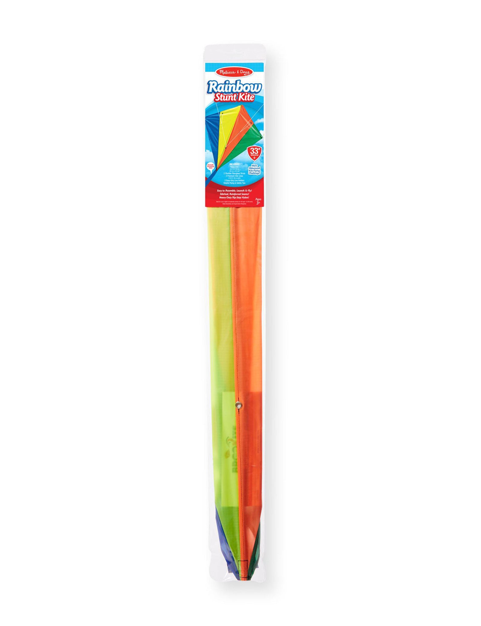 Let imagination and wonder take flight This colorful dual-line stunt kite with a 33-inch wingspan is perfect for those looking for a more advanced kite-flying challenge. Stitched, reinforced seams, heavy duty rip-stop nylon, and flexible fiberglass struts help the kite hold up to countless hours of flying time. Eye-catching streaming tails add to the dramatic sight of this beautiful kite in the air The kite comes with two strong, premium kite lines 118 feet each on easy-grip line holders to allo