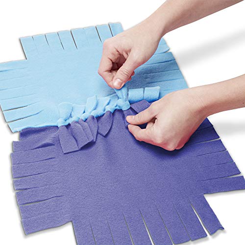 Want to make a super-cozy quilt in no time? Just knot it! We've made it exciting and easy to make an extra-large, colorful fleece blanket. Just tuck the extra-wide and extra-long fringe into slits and tie single knots to piece together a uniquely you quilt! The fabric pieces are super thick, soft and fuzzy on both sides for extra snuggling. The 48 12-inch by 12-inch pieces include fringe that's nearly two inches long, which makes knotting fast and simple. The finished quilt is approximately four feet by five feet, but you can also use fewer pieces to make scarves or smaller projects! Illustrated instructions and design ideas are included.
