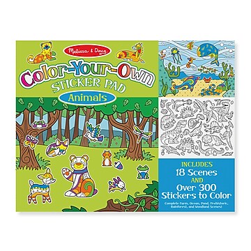 Extra-large sticker and coloring activity padIncludes 18 colorful backgrounds and more than 200 animal stickers to color and placeRemovable background scenes include farm, ocean, pond, prehistoric, rainforest, and woodland (each scene repeated 3 times)Promotes fine motor skills and creative playAges 4+; 14 x 11 x .25About Melissa & Doug Melissa & Doug toys are designed to nurture childhood wonder. From classic wooden toys to inventive crafts, pretend play, and games, Melissa & Doug products inspire creativity and imagination in children throughout the world. The thoughtfully designed toys spark free play thats full of joy and rich with learning. Since the companys founding more than 25 years ago, Melissa & Doug has consistently delivered innovative products with a commitment to uncompromising quality, safety, service, and value. Because high-quality playthings should be accessible to all, Melissa & Doug strives to share its passion for play with kids everywhere.Countless Ways to Play We make toys and other p