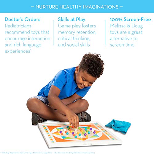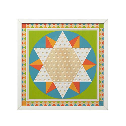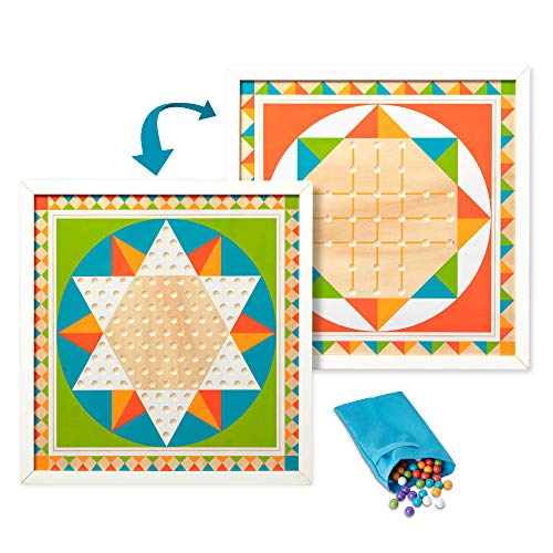 It's twice the fun with this double-sided wooden game board that also doubles as unique room decor! With two strategy games that are easy to learn but offer a lifetime of fun, this is a great set for beginners and experienced players alike. There's a bright and vibrant white-framed solitaire board on one side and a Chinese checkers board on the other, Both in a modern orange, yellow, blue, and green design for a fresh, eye-catching look. Use the hanging hardware to display the 17.5-Inch by 17.5-Inch board. Sixty wooden game pieces (Use for both games) store in the mesh storage bag. Detailed game instructions are included. Pediatricians recommend toys that encourage interaction and rich language experiences. Playing strategy games fosters memory retention, critical thinking, and social skills. This game board makes a great gift for 6-year-olds to 12-year-olds, and teens and grown-ups of all ages will also love playing these games. Add Melissa & Doug tic-stack-toe to round out the game play experience and give kids another engaging option for screen-free fun. For more than 30 years, Melissa & Doug has created beautifully-designed imagination- and creativity-sparking products that NBC news called “the gold standard in early childhood play.” we design every toy to the highest-quality standards, and to nurture minds and hearts. If your child is not inspired, give us a call and we'll make it right. Our phone number is on every product!