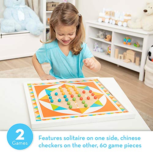 Melissa & Doug Double-Sided Wooden Solitaire & Chinese Checkers Board Game