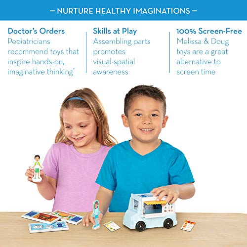 Take hungry imaginations on the road with the Magnetivity™ Magnetic Building Playset Food Truck! Magnetivity™ encourages kids to experiment, explore, and imagine by inspiring them to design and build their own unique food truck! The 6 double-sided panels with artwork on both sides (including one with flip-open awning and serving counter) slot into the vehicle and magnetically attach in different combinations, so kids can build their own unique barbecue, ice cream, or taco truck. The 55 included magnetic accessories stick to the panels and to the two magnetic wooden play figures with stands, inspiring open-ended, hands-on exploration and play! All Magnetivity™ panels are compatible. Pediatricians say building and rebuilding provide lessons in resilience. Assembling parts, as kids do with these Magnetivity kits, can also promote visual-spatial awareness. Magnetivity makes a great gift for 4-year-olds, 5-year-olds, 6-year-olds, and up. Even many 10-year-olds will enjoy building and creating with Magnetivity. For more than 30 years, Melissa & Doug has created beautifully designed imagination- and creativity-sparking products that NBC News called “the gold standard in early childhood play.” Today, Melissa & Doug is proudly partnering with the American Academy of Pediatrics to foster early brain development and help children build important life skills through play.