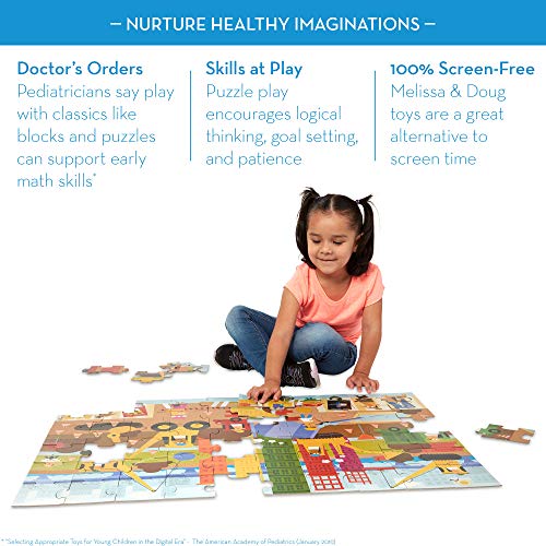Piece together problem-solving fun with this Natural Play Giant Floor Puzzle! The 60 thick and sturdy oversized pieces are easy for little fingers to assemble into a 36” x 24” (91.4 cm x 61 cm) work of art. A seek-and-find activity on the take-along storage case helps kid explore the detailed scene. Natural Play puzzles use recycled papers and soy-based inks. They’re a hands-on way for kids to discover the world around them! Pediatricians say play with classics like blocks and puzzles can support early math skills. Puzzle play encourages logical thinking, goal setting, and patience. This puzzle makes a great gift for 5-year-olds, 6-year-olds, 7-year-olds, and up. Add another Melissa & Doug Natural Play Giant Floor Puzzle in a different theme to give kids another engaging option for screen-free fun. For more than 30 years, Melissa & Doug has created beautifully designed imagination- and creativity-sparking products that NBC News called “the gold standard in early childhood play.” Today, Melissa & Doug is proudly partnering with the American Academy of Pediatrics to foster early brain development and help children build important life skills through play.
