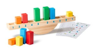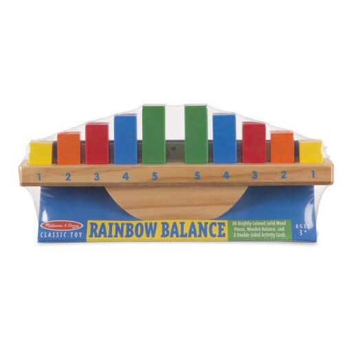 Discover the basics of balance with this colorful classic rocking toy! Mix and match the 10 brightly colored rectangular blocks in the numbered slots on the solid wood base to see if it balances. Try different combinations shown on the two illustrated activity cards, or draw in your own ideas. Kids three and older will love the weight and feel of the blocks and the gentle rocking motion of the balance. This is a toy that delights while teaching color and number recognition, matching and sorting, fine motor skills, and problem-solving skills. For more than 30 years, Melissa and Doug has created beautifully-designed imagination- and creativity-sparking products that NBC News called “the gold standard in early childhood play.” We design every toy to the highest-quality standards, and to nurture minds and hearts. If your child is not inspired, give us a call and we'll make it right. Our phone number is on every product! Gender: unisex.