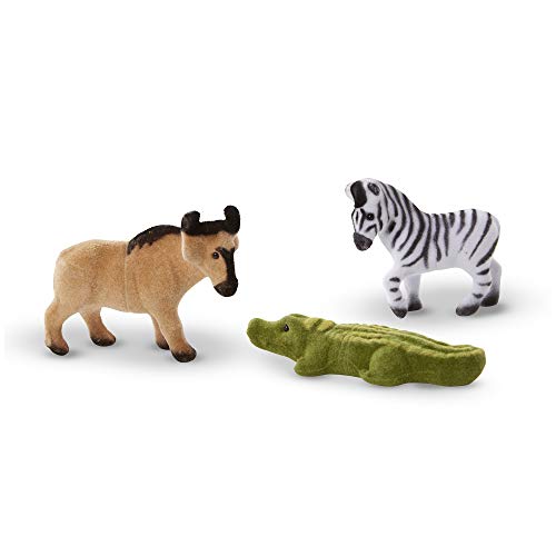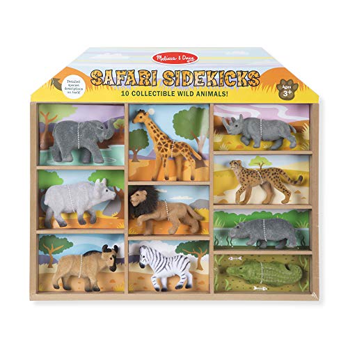 Discover endless adventures and hours of imaginative playtime with these exciting and realistically detailed safari animals! the collection of 10 felt-covered miniature models includes wild creatures of all sizes, from the towering giraffe to the majestic Lion with a flowing mane. All the animals store in individual compartments in the wooden storage tray. Fun facts about each animal are included. Kids 3 and older will love to play with and learn about life on the savannah!