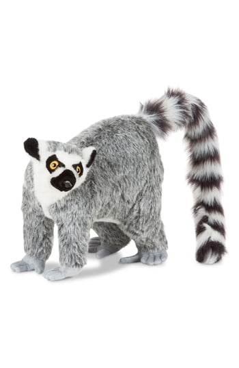 Standing stuffed plush lifelike lemurRealistic details like wide eyes, long, striped tail, hand-like paws, masked facial markings, and soft gray furSoft and squeezable with sturdy interior structure; quality craftsmanshipNot intended as a seat or ride-on15.5" x 14.5" x 9"About Melissa & Doug Melissa & Doug toys are designed to nurture childhood wonder. From classic wooden toys to inventive crafts, pretend play, and games, Melissa & Doug products inspire creativity and imagination in children throughout the world. The thoughtfully designed toys spark free play that?s full of joy and rich with learning. Since the company?s founding more than 25 years ago, Melissa & Doug has consistently delivered innovative products with a commitment to uncompromising quality, safety, service, and value. Because high-quality playthings should be accessible to all, Melissa & Doug strives to share its passion for play with kids everywhere.Countless Ways to Play We make toys and other products that offer #CountlessWaysToPlay. We