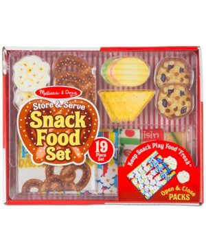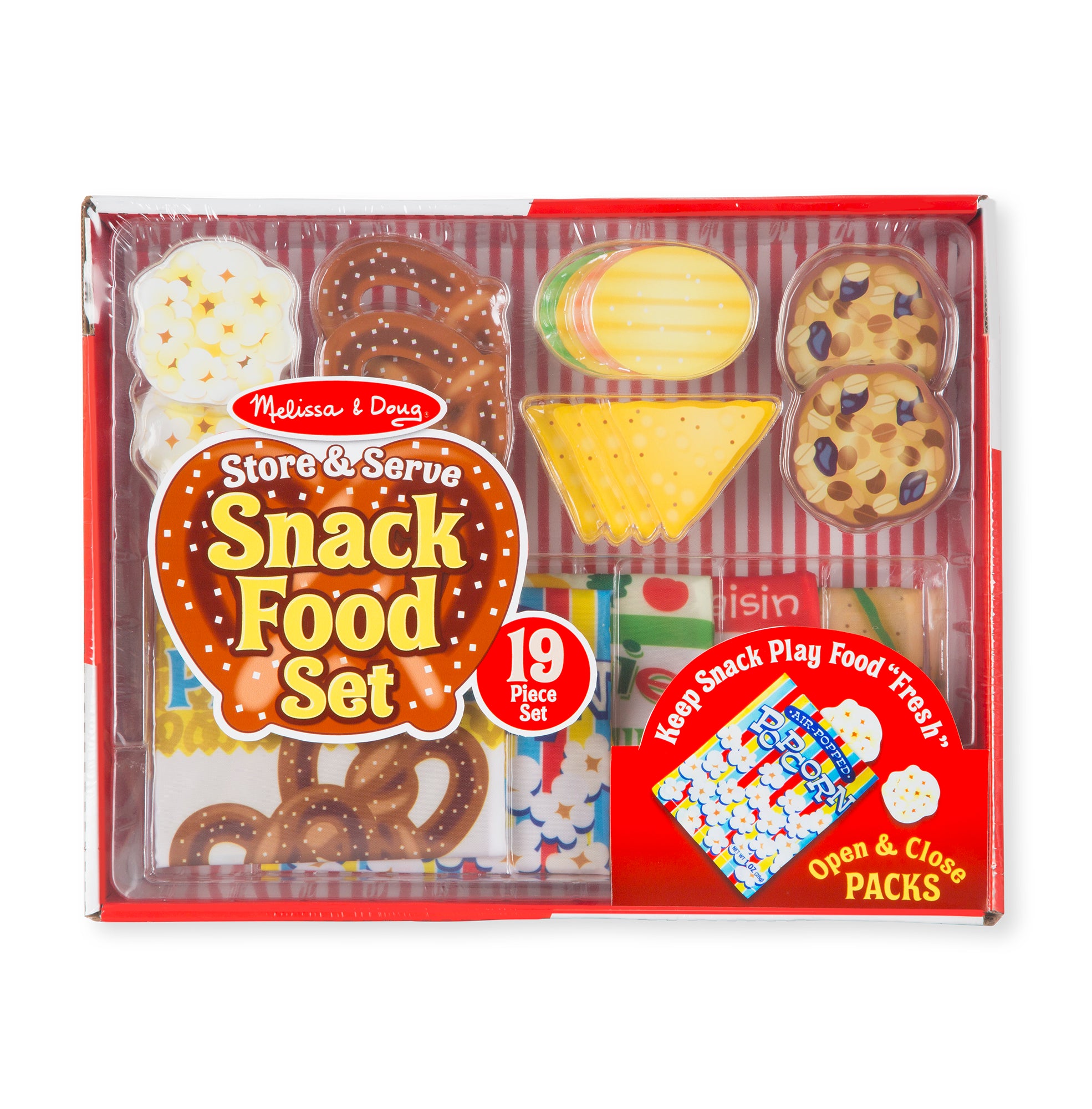 Perfect for pretend munching, these are the ultimate “grab-and-go” play snack bags! The five resealable cloth bags have self-stick tabs to keep wooden food pieces “fresh” when shopping or stocking play stores and kitchens. Play food includes popcorn, pretzels, veggie chips, oatmeal raisin cookies, and tortilla chips. Serve up scrumptious snacks, then store to “crunch” later! For more than 30 years, Melissa and Doug has created beautifully designed imagination- and creativity-sparking products that NBC News called “the gold standard in early childhood play.” We design every toy to the highest quality standards, and to nurture minds and hearts. If your child is not inspired, give us a call and we'll make it right. Our phone number is on every product! Gender: unisex.