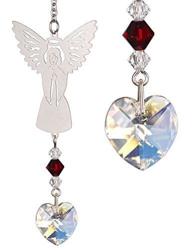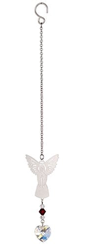 - GENUINE AUSTRIAN CRYSTAL SUNCATCHER: A beautiful angel ornament, accented by a garnet red birthstone crystal, leads to an aurora borealis heart