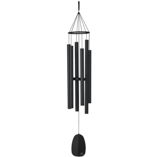 GUARANTEED MUSICALLY TUNED MY BELLS OF PARADISE CHIME, LARGE - BLACK. Made of aluminum tubes that are specially suspended, these chimes resonate longer than other wind chimes, bathing you in enduring harmony every time the wind blows. Based on an ancient system known as just intonation, in which the vibrations of the different tubes are related to one another by simple whole-number ratios, they produce the purest, most beautiful musical intervals. PRODUCT FEATURES. Measuring 44-inches in overall length (total hanging length is measured from top of string loop to bottom of wind catcher), this chime features a black aluminum ring and wind catcher that is weather-resistant, 6 satin black aluminum tubes that will not rust when exposed to the elements. QUALITY THAT IS GUARANTEED. Woodstock stands behind every product they make with a one-year warranty and a lifetime tuning guarantee on their musically tuned chimes. WOODSTOCK THE ORIGINAL MUSICALLY TUNED CHIME. Tuned to beautiful melodies and scales from around the world and available in a wide range of styles, songs and sizes, you can choose the Woodstock Chime that speaks to your soul. HOW IT ALL BEGAN. More than 30-years ago, the first Woodstock Chime was created by Grammy award-winning musician Garry Krista from an aluminum lawn chair he found in a landfill. As a professional musician and instrument designer, he was fascinated by the Scales of Olympus, a 7th century pentatonic scale that can't be played on a modern piano. Garry had the idea to cut and tune the lawn chair chime tubes to the exact frequency of the ancient scale. The resulting Chimes of Olympus was the first Woodstock Chime and is still one of our bestselling wind chimes. ac Garry and his wife Diane founded Woodstock Percussion, Inc. in 1979 and it remains a family-owned business in New York's Hudson Valley.
