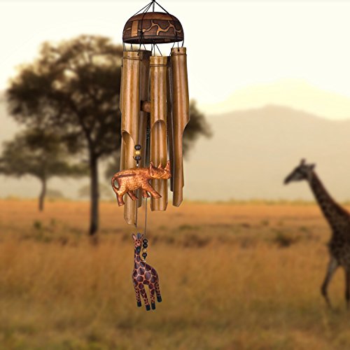 - HAND-TONED BY MUSICIANS: African animal themed wind chime yields musical and enchanting tones from its mellow bamboo tubes; lifetime tuning guarantee