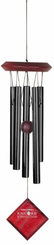 GUARANTEED MUSICALLY TUNED ENCORE CHIMES OF MARS - BLACK. This wind chime is designed and handcrafted for superior musical performance. It is hand-tuned to a universal, pentatonic (five-note) scale and acts in concert with the wind to create random patterns of wonderful sound. Harmonizes beautifully with all the other Encore Collection windchimes. PRODUCT FEATURES. Measuring 17-inches in overall length (total hanging length is measured from top of gather ring to bottom of wind catcher), this chime features a wood top and windcatcher with a beautiful bubinga finish that is weather-resistant, and 5 black aluminum tubes that will not rust when exposed to the elements. EASY CUSTOMIZATION. The removable windcatcher can be taken to a trophy shop, printer or jeweler to be engraved or silk-screened. QUALITY THAT IS GUARANTEED. Woodstock stands behind every product they make with a one-year warranty and a lifetime tuning guarantee on their musically tuned chimes. WOODSTOCK THE ORIGINAL MUSICALLY TUNED CHIME. Tuned to beautiful melodies and scales from around the world and available in a wide range of styles, songs and sizes, you can choose the Woodstock Chime that speaks to your soul. HOW IT ALL BEGAN. Garry and his wife Diane founded Woodstock Percussion, in 1979 and it remains a family-owned business in New York's Hudson Valley. Grammy award-winning musician Garry Kvistad created the first Woodstock Chime from an aluminum lawn chair he found in a landfill. As a professional musician and instrument designer, he was fascinated by the Scales of Olympos, a 7th century pentatonic scale that can't be played on a modern piano. Garry had the idea to cut and tune the lawn chair chime tubes to the exact frequency of the ancient scale. The resulting Chimes of Olympos was the first Woodstock Chime and is still one of our bestselling wind chimes.