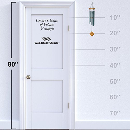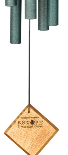 GUARANTEED MUSICALLY TUNED ENCORE CHIMES OF POLARIS - VERDIGRIS. This wind chime is designed and handcrafted for superior musical performance. It is hand-tuned to a universal, pentatonic (five-note) scale and acts in concert with the wind to create random patterns of wonderful sound. Harmonizes beautifully with all the other Encore Collection windchimes. PRODUCT FEATURES. Measuring 22-inches in overall length (total hanging length is measured from top of gather ring to bottom of wind catcher), this chime features a wood top and windcatcher with a beautiful cherry finish that is weather-resistant, and 5 verdigris aluminum tubes that will not rust when exposed to the elements. EASY CUSTOMIZATION. The removable windcatcher can be taken to a trophy shop, printer or jeweler to be engraved or silk-screened. QUALITY THAT IS GUARANTEED. Woodstock stands behind every product they make with a one-year warranty and a lifetime tuning guarantee on their musically tuned chimes. WOODSTOCK THE ORIGINAL MUSICALLY TUNED CHIME. Tuned to beautiful melodies and scales from around the world and available in a wide range of styles, songs and sizes, you can choose the Woodstock Chime that speaks to your soul. HOW IT ALL BEGAN. Garry and his wife Diane founded Woodstock Percussion, in 1979 and it remains a family-owned business in New York's Hudson Valley. Grammy award-winning musician Garry Kvistad created the first Woodstock Chime from an aluminum lawn chair he found in a landfill. As a professional musician and instrument designer, he was fascinated by the Scales of Olympos, a 7th century pentatonic scale that can't be played on a modern piano. Garry had the idea to cut and tune the lawn chair chime tubes to the exact frequency of the ancient scale. The resulting Chimes of Olympos was the first Woodstock Chime and is still one of our bestselling wind chimes.