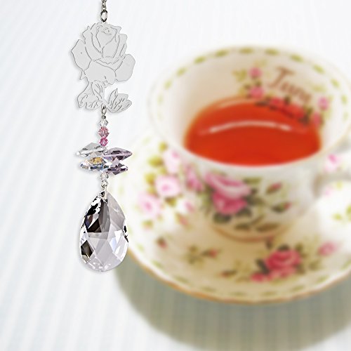 A large crystal drop is topped by smaller pink crystals and a silver rose. Roses are ancient symbols of love and beauty. In ancient Rome a wild rose would be placed on the door of a room where secret or confidential matters were discussed. The phrase sub rosa, or "under the rose", means to keep a secret derived from this ancient Roman practice. This rose tops a cluster of crystals that sparkle and shine in the sun. Buy one for your sweetheart! Made of genuine Austrian crystals, these glittering sparklers do for light what Woodstock chimes do for sound. Recommended for indoor use. WOODSTOCK THE ORIGINAL MUSICALLY TUNED CHIME - Woodstock stands behind every product they make with a one-year and a lifetime tuning on their musically tuned chimes. The first Woodstock Chime was created by Grammy award-winning musician Garry Kvistad from an aluminum lawn chair he found in a landfill. As a professional musician and instrument designer, he was fascinated by the Scales of Olympos, a 7th century pentatonic scale that can't be played on a modern piano. Garry had the idea to cut and tune the lawn chair chime tubes to the exact frequency of the ancient scale. The resulting Chimes of Olympos was the first Woodstock Chime and is still one of their bestselling windchimes. Garry and his wife Diane founded Woodstock Percussion, in 1979 and it remains a family-owned business in New York's Hudson Valley.