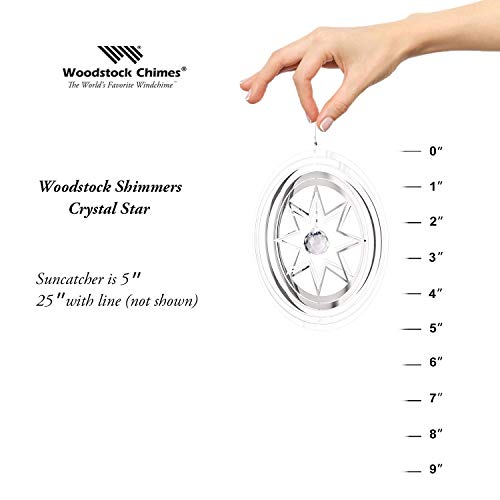 RAINBOW MAKERS SHIMMERS CRYSTAL SUNCATCHER - STAR. It's a starry shimmer, with round rings that beautifully reflect the energy of light. PRODUCT FEATURES. Measures 5-inches in length (25-inches with hanging line). Crafted from polished stainless steel and features a glass crystal accent, hanging line, and an aligator clip. Woodstock Crystal Suncatchers - they do for light what our chimes do for sound. WOODSTOCK THE ORIGINAL MUSICALLY TUNED CHIME. Tuned to beautiful melodies and scales from around the world and available in a wide range of styles, songs and sizes, you can choose the Woodstock Chime that speaks to your soul. HOW IT ALL BEGAN - Garry and his wife Diane founded Woodstock Percussion, in 1979 and it remains a family-owned business in New York's Hudson Valley. Grammy award-winning musician Garry Kvistad created the first Woodstock Chime from an aluminum lawn chair he found in a landfill. As a professional musician and instrument designer, he was fascinated by the Scales of Olympos, a 7th century pentatonic scale that can't be played on a modern piano. Garry had the idea to cut and tune the lawn chair chime tubes to the exact frequency of the ancient scale. The resulting Chimes of Olympos was the first Woodstock Chime and is still one of our bestselling wind chimes.