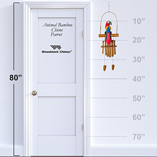 GUARANTEED MUSICALLY TUNED PARROT BAMBOO CHIME. Hand-toned by musicians, brightly colored parrot chime offers the soothing sound of bamboo, chiming in the breeze. Made with pride by Balinese craftsmen, each piece is individually hand-carved and hand-crafted. Measures 36-inches in overall length (total hanging length is measured from top of gather ring to bottom of wind catcher). Features a hand-painted wood bird perched underneath a rattan arch, 6 bamboo tubes and 2 windcatchers. QUALITY THAT IS GUARANTEED. Woodstock stands behind every product they make with a one-year warranty and a lifetime tuning guarantee on their musically tuned chimes. Tuned to beautiful melodies and scales from around the world and available in a wide range of styles, songs and sizes, you can choose the Woodstock Chime that speaks to your soul. HOW IT ALL BEGAN. Garry and his wife Diane founded Woodstock Percussion, in 1979 and it remains a family-owned business in New York's Hudson Valley. Grammy award-winning musician Garry Kvistad created the first Woodstock Chime from an aluminum lawn chair he found in a landfill. As a professional musician and instrument designer, he was fascinated by the Scales of Olympos, a 7th century pentatonic scale that can't be played on a modern piano. Garry had the idea to cut and tune the lawn chair chime tubes to the exact frequency of the ancient scale. The resulting Chimes of Olympos was the first Woodstock Chime and is still one of our bestselling wind chimes.