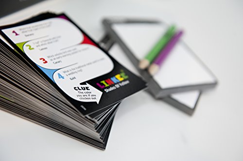 Linkee is a super-simple, shout-out-loud fast and fun quiz game with a twist. This family party game does things a little differently than other quiz games—for starters, players don’t win by getting the questions right, but by guessing the link between the answers! Only 30 minutes to play. Two minutes to learn. No boring waiting your turn. Just answer the four questions and spot the connection. There’s also a clue to help too. As soon as you’ve got it, shout LINKEE! Ages 14+ 2-30 Players Includes trivia cards with over 1400 questions and links, 4 pencils, 4 fancy printed pads and simple rules