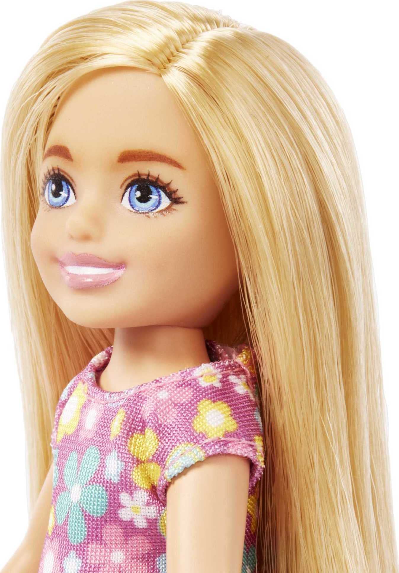 Barbie Chelsea Doll, Small Doll Wearing Purple Flowered Dress and Shoes with Blond Hair & Blue Eyes