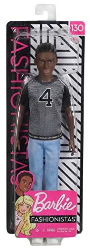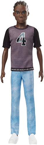 Barbie Ken Fashionistas Doll with Sculpted Brunette Hair Wearing a Number 4 T-Shirt, Denim Pants & Shoes, Toy for Kids 3 to 8 Years Old