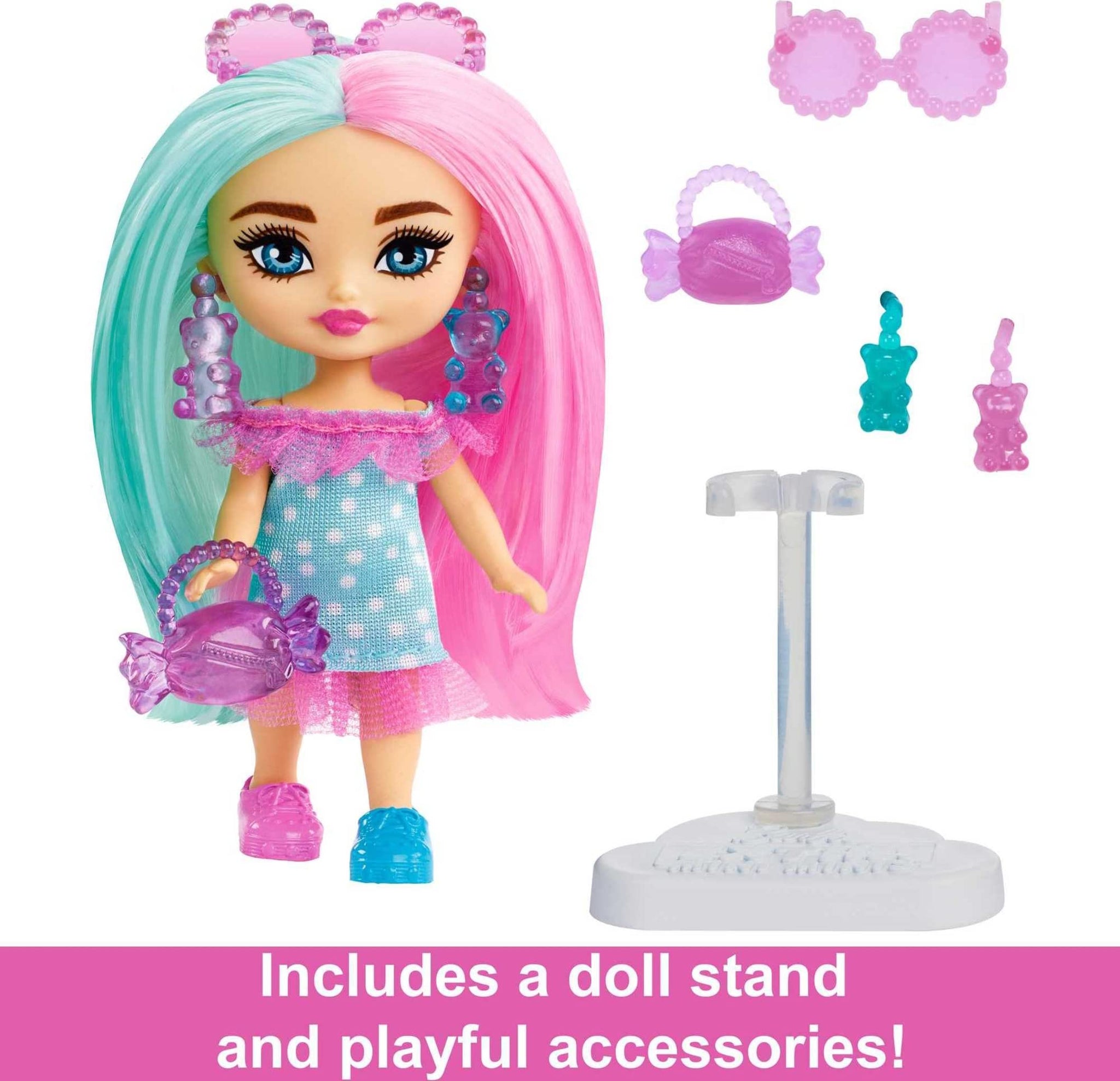 Bundle of 2 | Barbie Extra Mini Minis Doll - Brunette Doll w/ Alien Sweater Dress & Doll with Two-Tone Pink and Mint Hair + Accessories