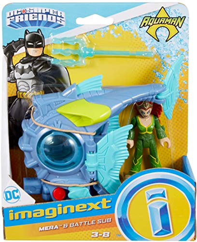 Mera, queen of Atlantis, is just as fierce as Aquaman. She dives into action to protect her people in this fully loaded battle submarine. A press of a button sends projectiles flying, and enemies diving for cover! Your young Super Hero will love creating exciting adventures with this figure set! Fisher-Price Imaginext Imagine What's Next!