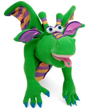 From the tips of his wings to the tips of his forked tongue, it's easy to breathe excitement into this enchanting dragon from Melissa and Doug. The glitter in his big googly eyes and friendly, expressive face will add an important character to medieval puppet shows and pretend play.