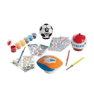 Find Craft Kits at Target.com! Kids will have a ball personalizing these 3 sports-themed crafts! This engaging set includes resin banks shaped like a soccer ball, football, and baseball, plus enough letter and number stickers (105 total) to add their own name, team name, jersey number, or other message, as well as 47 foil stickers, 6 pots of paint, and 3 paintbrushes. Gender: Unisex. Age Group: 8 Years and Up,12,13,14,15,8,9,10,11.