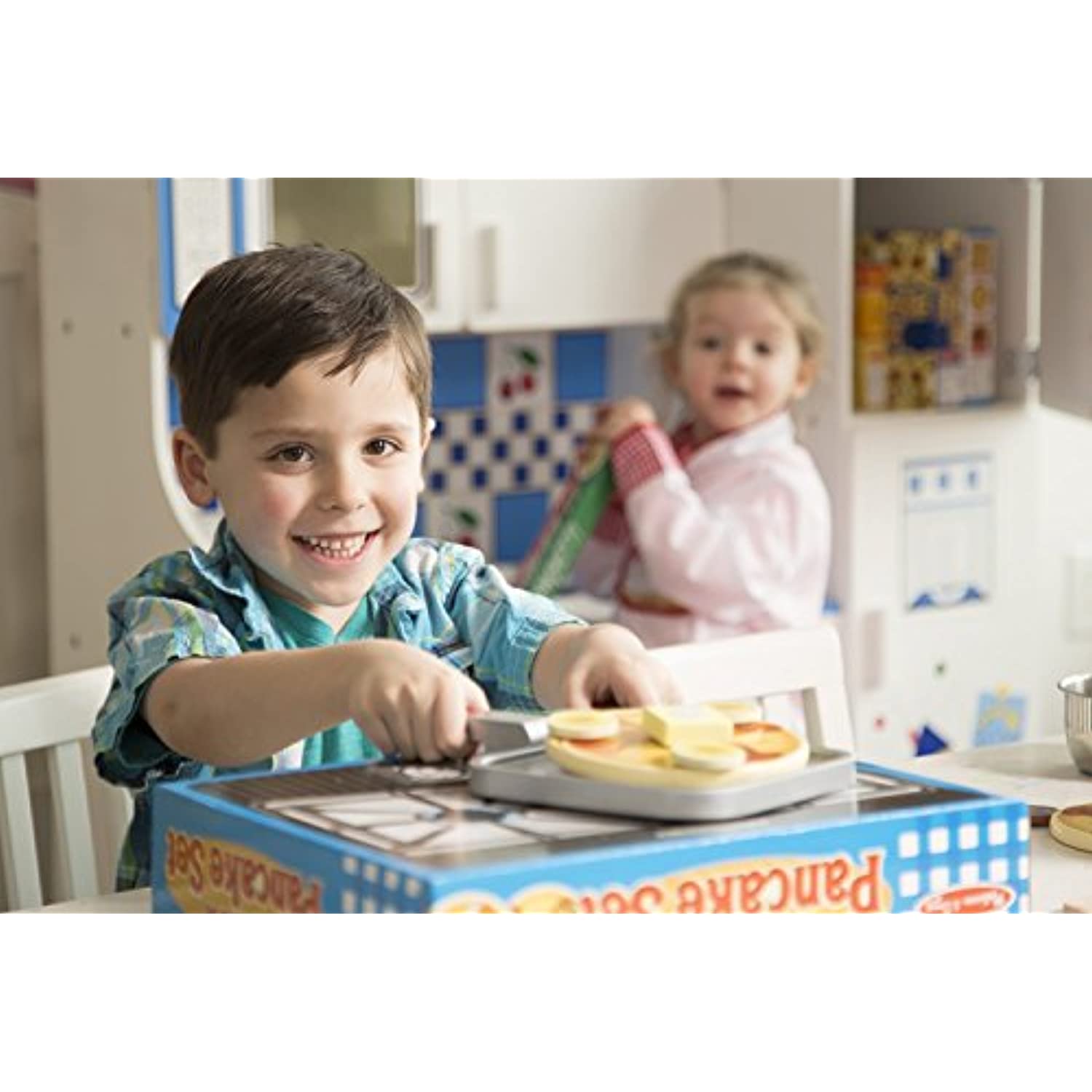Breakfast, lunch, or dinner, you’re covered with these Melissa & Doug Wooden Food Sets. Make meals all day long, different every time. You can mix and match all of the included pieces to create culinary masterpieces that look so delicious you’ll wish they were real. Cooking looks fun and lots of kids want to try it, but the kitchen can be dangerous with hot stoves and sharp cutlery. That’s why Melissa & Doug give children the opportunity to be creative with food items with no risk or danger that comes with a real kitchen. We make toys and other products that offer Countless Ways to Play. We believe the best playthings are often simple concepts that inspire children to come up with their own twists. With everything we create, we hope to encourage. Each toy made by Melissa & Doug is created with you and your child in mind. Their durable construction, safe features, and fun designs are everything that you could want in a toy. Trust in Melissa & Doug to bring only the best into your home. Package contains (1) Melissa & Doug Flip and Serve Pancake Set, 17 Pieces, Wooden and (1) Melissa & Doug Slice and Bake Cookie Set, 29 Pieces, Wooden, Recommended for ages 3+