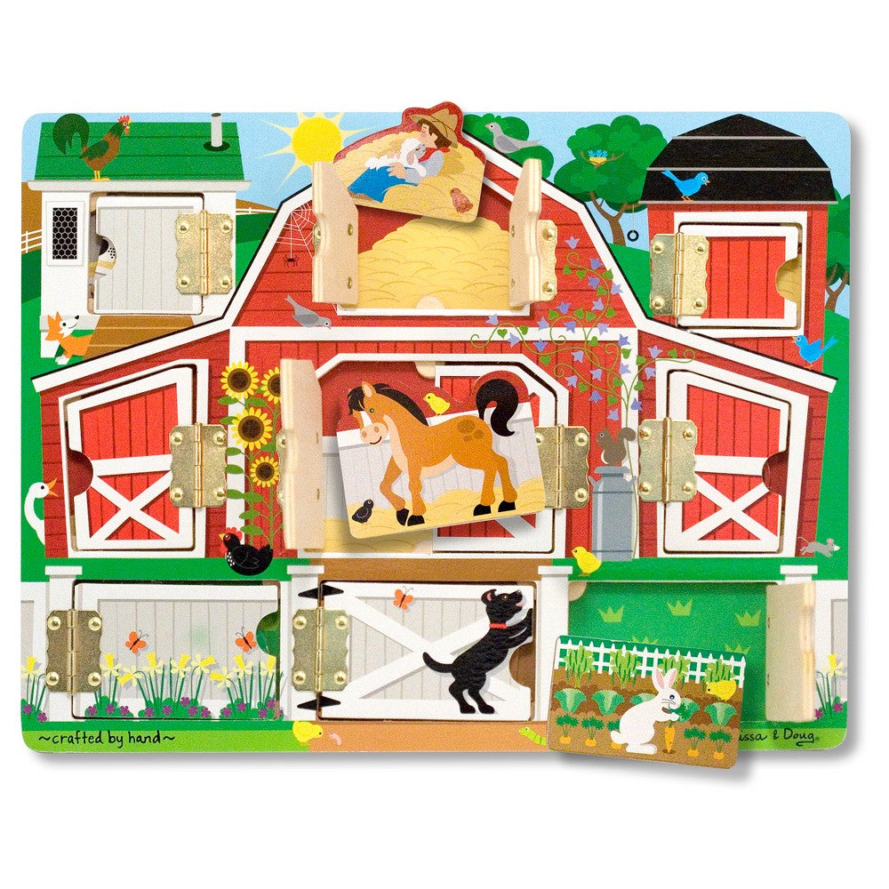 Here a chick, there a chick...behind each of the 9 hinged doors on this charming barnyard scene is a delightful, magnetic animal. Learning about animals while improving memory and fine motor skills will keep children busy and having fun on the farm for hours! Gender: unisex. Age Group: kids.