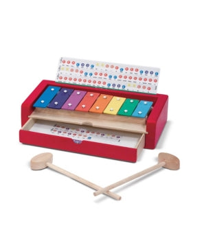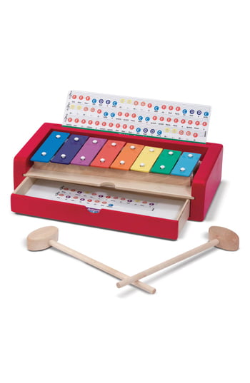 More than an instrument, this first xylophone set is a child's best introduction to music! Mallet in hand, children can explore a simple octave as they be familiar with simple musical concepts through hands-on play. Those ready for the next step need only open the integrated storage drawer to reveal five double-sided song cards, featuring color-coded notations on a real musical staff. Place one in the music holder above the keys, and kids and parents alike will be amazed at how simple it is to play 10 favorite children's songs. For more than 30 years, Melissa and Doug has created beautifully-designed imagination- and creativity-sparking products that NBC News called “the gold standard in early childhood play.” We design every toy to the highest-quality standards, and to nurture minds and hearts. If your child is not inspired, give us a call and we'll make it right. Our phone number is on every product! Gender: unisex.