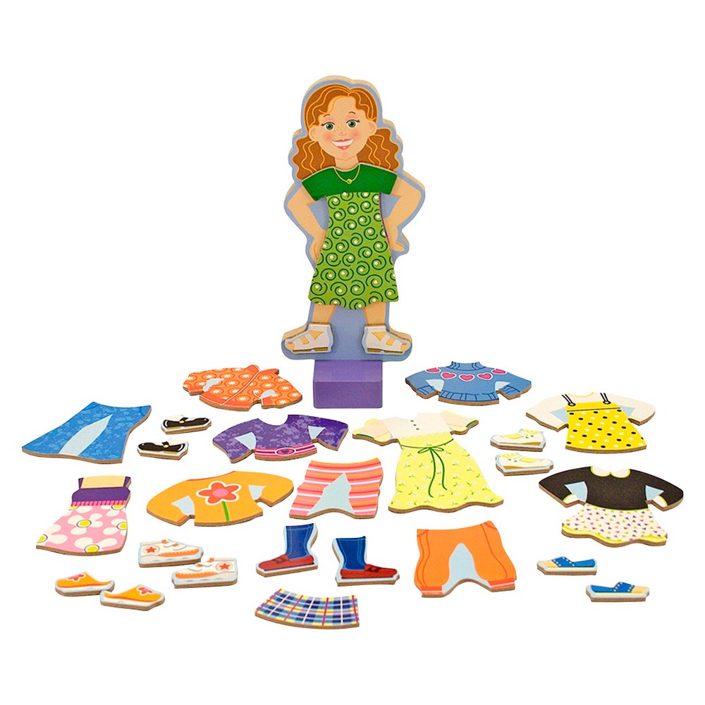 Meet Maggie Leigh, a magnetic wooden dress-up doll whose wardrobe fits her perfectly! This set includes a magnetic wooden doll with a wooden stand and lots of colorful and attractive magnetic outfits and accessories for pretend play! Pediatricians rmend toys that inspire hands-on imaginative thinking. This toy makes a great gift for 3-year-olds, 4-year-olds, 5-year-olds, and up. It's a perfect gift for birthdays and special occasions. Add a Melissa and Doug Abby and Emma Magnet Play Set to round out the play experience and give kids another engaging option for screen-free fun. For more than 30 years, Melissa and Doug has created beautifully-designed imagination- and creativity-sparking products that NBC News called “the gold standard in early childhood play.” We design every toy to the highest-quality standards, and to nurture minds and hearts. If your child is not inspired, give us a call and we'll make it right. Our phone number is on every product! Gender: female.