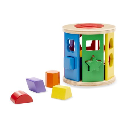 This brightly colored wooden shape-sorter is an exciting update on a classic toy! Toddlers can drop the dozen-plus vibrant wooden shapes—including a triangle, octagon, star, rectangle, square, trapezoid, and hexagon—through the color-matched holes, then roll the drum along, open the lid, and start all over again. It’s an early-learning powerhouse that encourages color and shape recognition, manual dexterity, and more. This wooden toy is made from durable and child-safe materials, which delivers exceptional quality and value, making it a top seller and a childhood favorite. Our shape-sorting toy helps teach multiple skills including color and shape recognition, sorting skills, problem-solving abilities, and manual dexterity. The Melissa and Doug Match and Roll Shape-Sorter makes an exceptional gift for kids 12 months and up. Add the Melissa and Doug Pound and Roll Tower to round out the hands-on, screen-free play experience. For more than 30 years, Melissa and Doug has created beautifully designed imagi