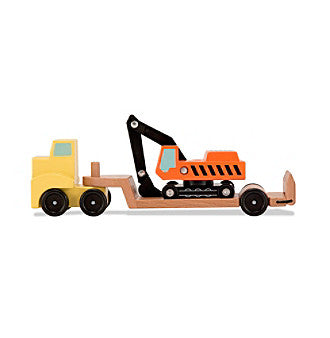 Melissa & Doug Trailer and Excavator Wooden Vehicle Set (3pc)