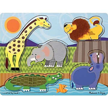 Melissa & Doug Zoo Animals Touch and Feel Textured Wooden Puzzle (5pc)