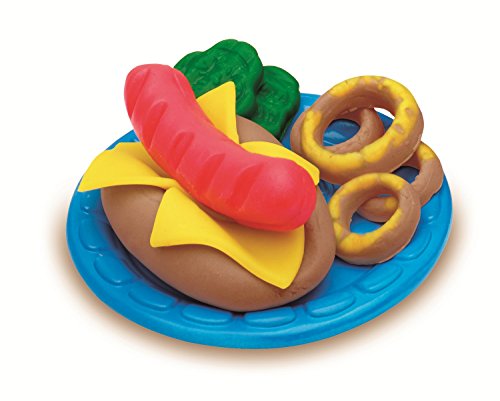 Grill up the fun and have a Play-Doh barbecue! Pretend lunchtime creations are up to the imagination with these cookout tools. Open the grill and place some Play-Doh compound inside to create silly hamburgers, imaginary hot dogs, and make-believe buns. Create outrageous onion rings and even more Play-Doh toppings on the lid of the grill. The decorator tool features an attachment with different shapes to make funny fries, crazy condiments, and other fun add-ons, and the roller doubles as a handle for the grill. When the cookout creations are ready, show them off with the spatula and plates. With Play-Doh Kitchen Creations, the best ingredient of all is imagination! Hasbro, Play-Doh, and all related properties are trademarks of Hasbro.
