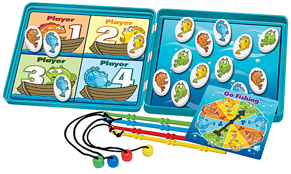 Content: 16 Magnetic Fish, 4 Magnetic Fishing Poles, Spinner, Magnetic Game Board, Rules