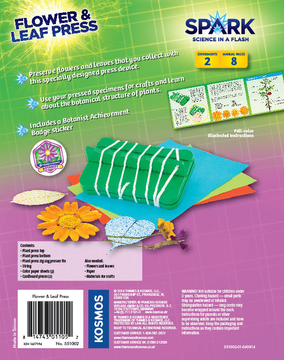 Preserve flowers and leaves that you collect with this specially designed press device. Use your pressed specimens for crafts. Learn about the botanical structure of plants.