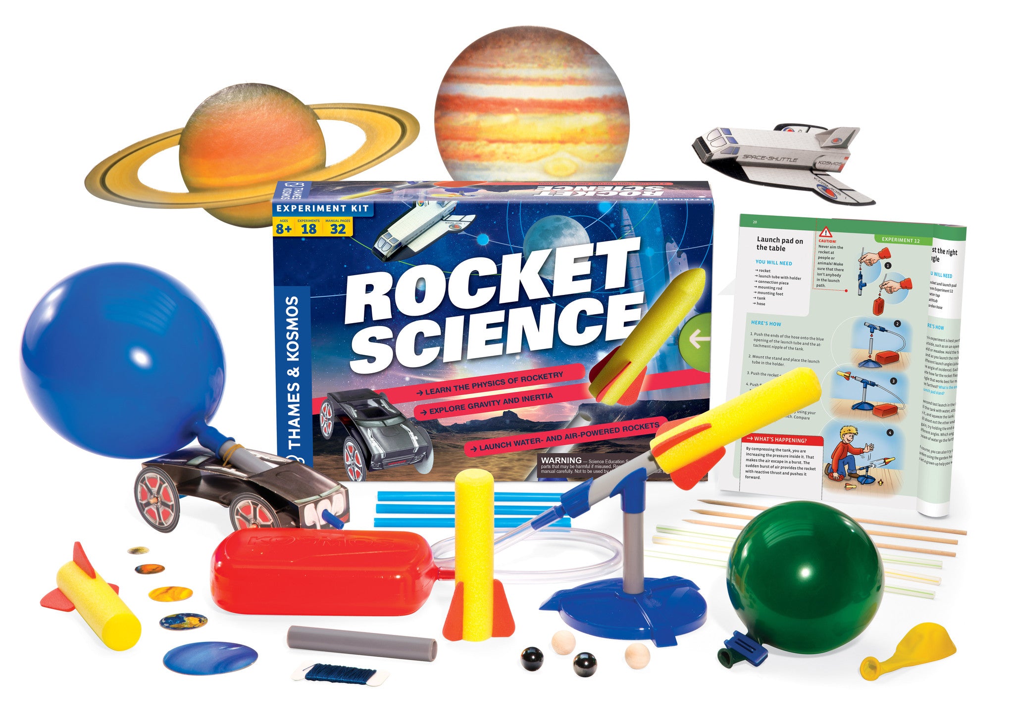 Last century, the effort to put humans on the moon inspired a whole generation of scientists and engineers. More recently, we have been captivated by new discoveries made by robots on Mars. Our internet, GPS maps, and telecommunications networks all depend on satellites. Whether you’re putting humans on the moon, robots on Mars, or satellites in orbit, you need rockets built by rocket scientists. This kit is, in fact, rocket science. But that doesn’t mean it’s difficult or boring! Physics comes alive in this action-packed series of experiments centered around a specially-designed “stomp-on” rocket launcher with three foam rockets. Launch water- and air-powered rockets to learn about action and reaction forces. Build a balloon-propelled rocket, boat, and race car. Play a game to try to hit target “planets” with the foam rockets. Explore the physical principles of gravity and inertia. Learn about air pressure. Read up on the different vehicles humans have used to escape Earth’s gravitational pull.